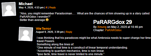 IIRC you mentioned Paradoximan several times with some interesting theories, but I don’t remember you mentioning timeline paradoxes in any of that. My memory is not known to be reliable though.